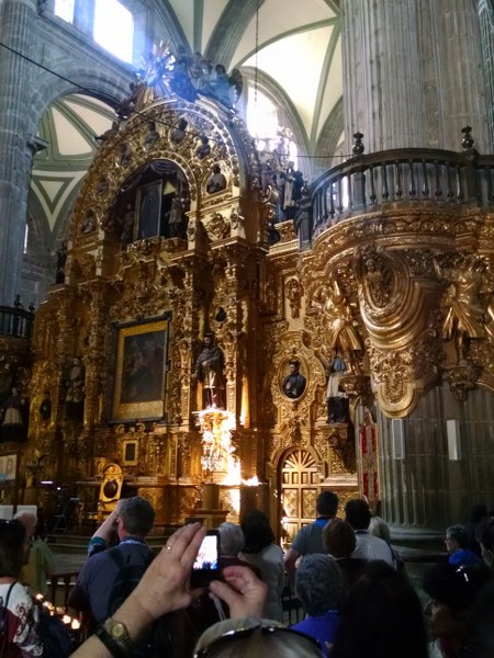devotion to Our Lady of Covadonga.Although it was on our itinerary, we saw the National Palace only from the outside, from the other side of the Zocalo, as we walked directly to the Metropolitan Cathedral. I did get a few moments of Roberto describing the Zocalo on video, however.